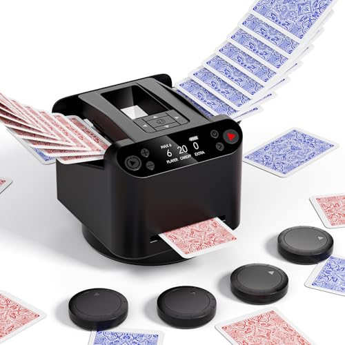 INNCNN 2-in-1 Automatic Card Shuffler and Dealer Machine with 4 Remotes for 1-2 Decks, USB-C Rechargeable, Supports 1-12 Players, Programmable, for Poker, UNO, Blackjack, Texas Holdem