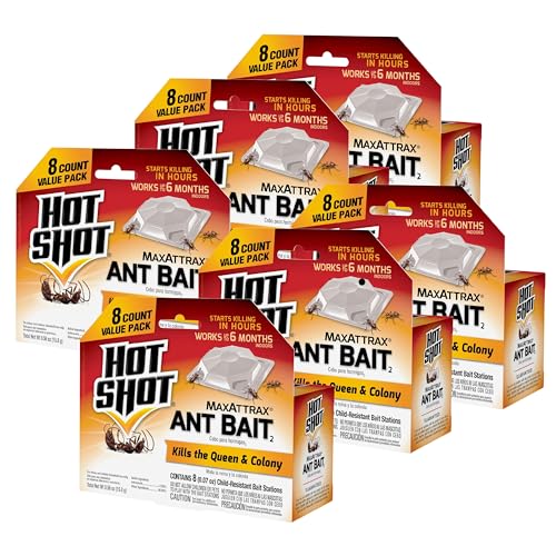 Hot Shot MaxAttrax Ant Bait 8 Count, Child-Resistant Bait Stations, 6 Pack