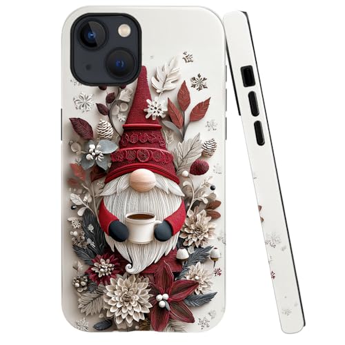 DJSOK Compatible with iPhone 13,Glossy PC Anti-Scratch Shockproof Case - Santa Claus Flower Coffee