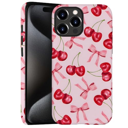 Generic Case for iPhone 11 Pro - [Drop Protection Phone Cover] - Hybrid Case for Girl Women - Cherry Ribbon Bow Fruit Pink