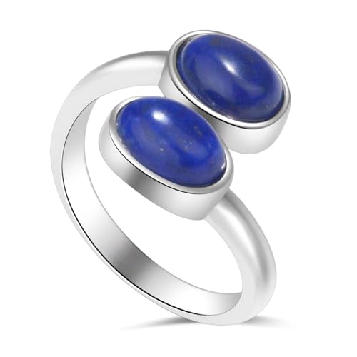 Lapis Lazuli Ring, Natural Gemstone Ring for Women, Cute Adjustable Handmade Two Stone Ring Gifts for Teen Girls’ Jewelry.