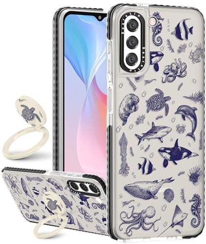 Boaretiu for Samsung Galaxy S22 Case - Cute Kawaii Fashion Cool 360° Rotate Ring Holder Kickstand Sea Fish for Women Girls Boys Teens Girly for Galaxy S22 Case with Stand
