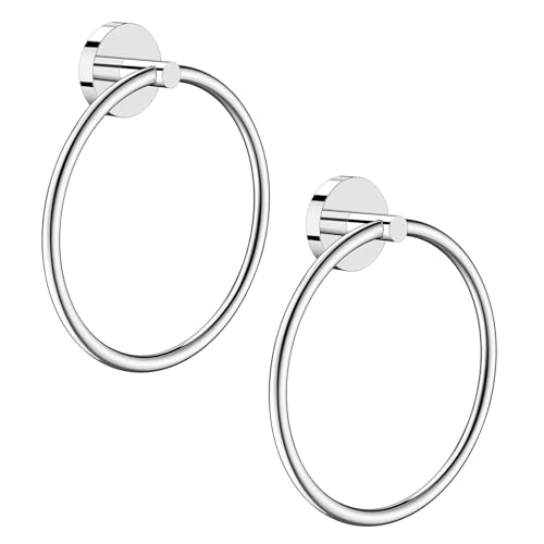 EZKEY Hand Towel Holder Screw-in Mirror Silver Towel Ring for Bathroom Wall Stainless Steel Towel Hanger Round Towel Racks for Bathroom Decor and Accessories, 2 Packs
