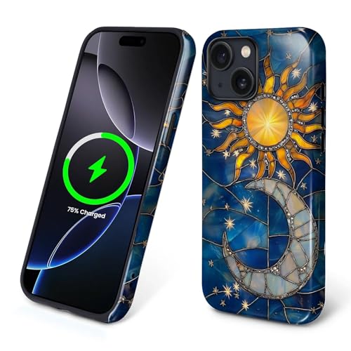 Flivro Magnetic Case for iPhone 15,Compatible with Magsafe,PC Hard Shell Silicone Inner Bumper,Anti-Scratch Full-Body Cover Shockproof Slim Case for iPhone 15 - Stain Glass Starry Night Sky